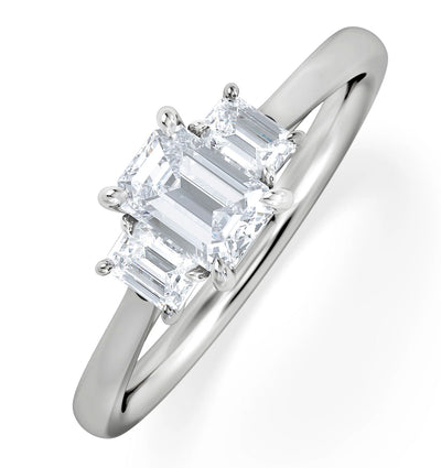 Discover our Evoke Emerald Cut Lab Diamond Trilogy Ring, featuring a total of 0.50ct of brilliant F/VS lab-grown diamonds and a 0.25ct centre stone, set in luxurious recycled white gold. This ring brings a contemporary elegance to the classic trilogy...