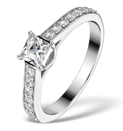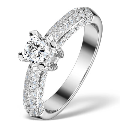 An eye-catching certified Natalia Engagement Ring in Platinum. Claw setting. 0.91CT of F/VS1 quality diamonds. Free UK delivery and a 5 year guarantee.