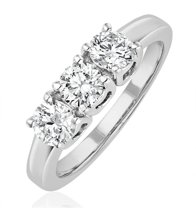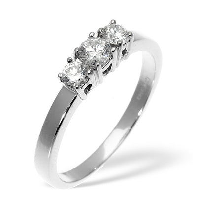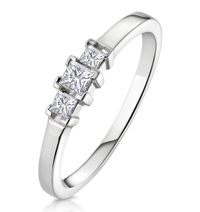 This alluring three stone Lauren White gold ring would make a show-stopping engagement ring for the special person in your life. The 0.25CT of G/VS Quality Diamonds shine with a brilliant white light which glimmers brightly against the 18K white...
