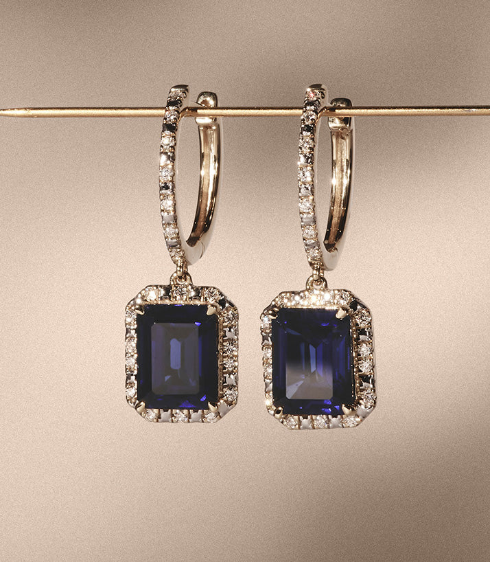 Discover the Astra Lab Sapphire and Diamond Drop Halo Octagon Cut Earrings. These silver hoop earrings - set with 0.26ct of H/SI quality, consciously crafted diamonds - break the mould from a traditional hoop with the intriguing addition of 4.00ct...