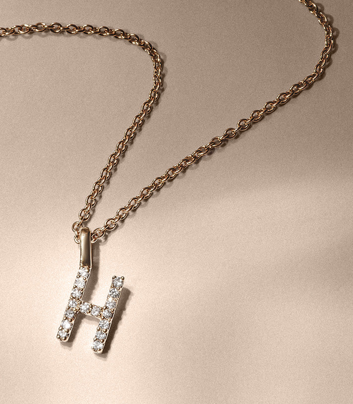 Discover our premium 0.09ct lab diamond initial pendant in the letter ‘H’ and choose your own diamond-set initial, set in the finest 9k yellow gold. A claw set, initial pendant makes for the perfect, personalised piece of daily-wear jewellery, while...