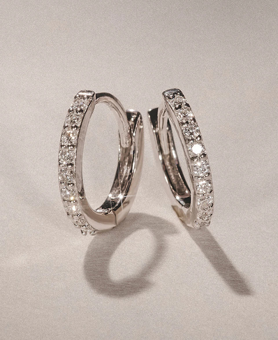 Add everyday elegance to your look with the Duo Row Huggie Earrings in recycled sterling silver. Featuring a total of 0.22ct lab-grown diamonds in a pavé design with rhodium tips, these earrings put a modern spin on the classic huggie...