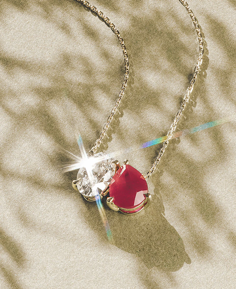 Discover our Alegria Lab Ruby Pendant 0.90ct in 18k Gold Vermeil, featuring 0.13ct of lab-grown diamonds and a vibrant 0.90ct of lab-grown rubies in an 18k gold vermeil setting. This necklace showcases a beautifully crafted single clover-shaped centerpiece, symbolising both...