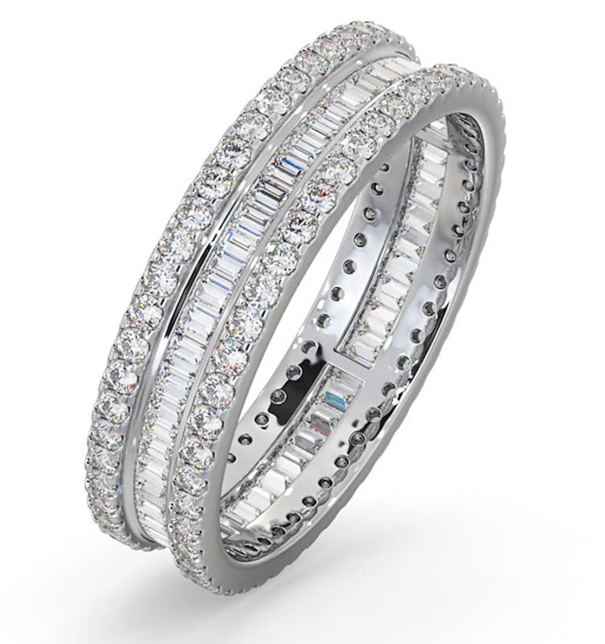 Eternity rings are traditionally gifted to mark life’s most meaningful milestones, such as anniversaries, the birth of a child, or any other significant celebration. You can wear them as part of your wedding stack, or on any finger you choose. The continuous row of sparkling stones symbolises everlasting love and commitment, making them a meaningful choice for marking a new chapter in your love story.