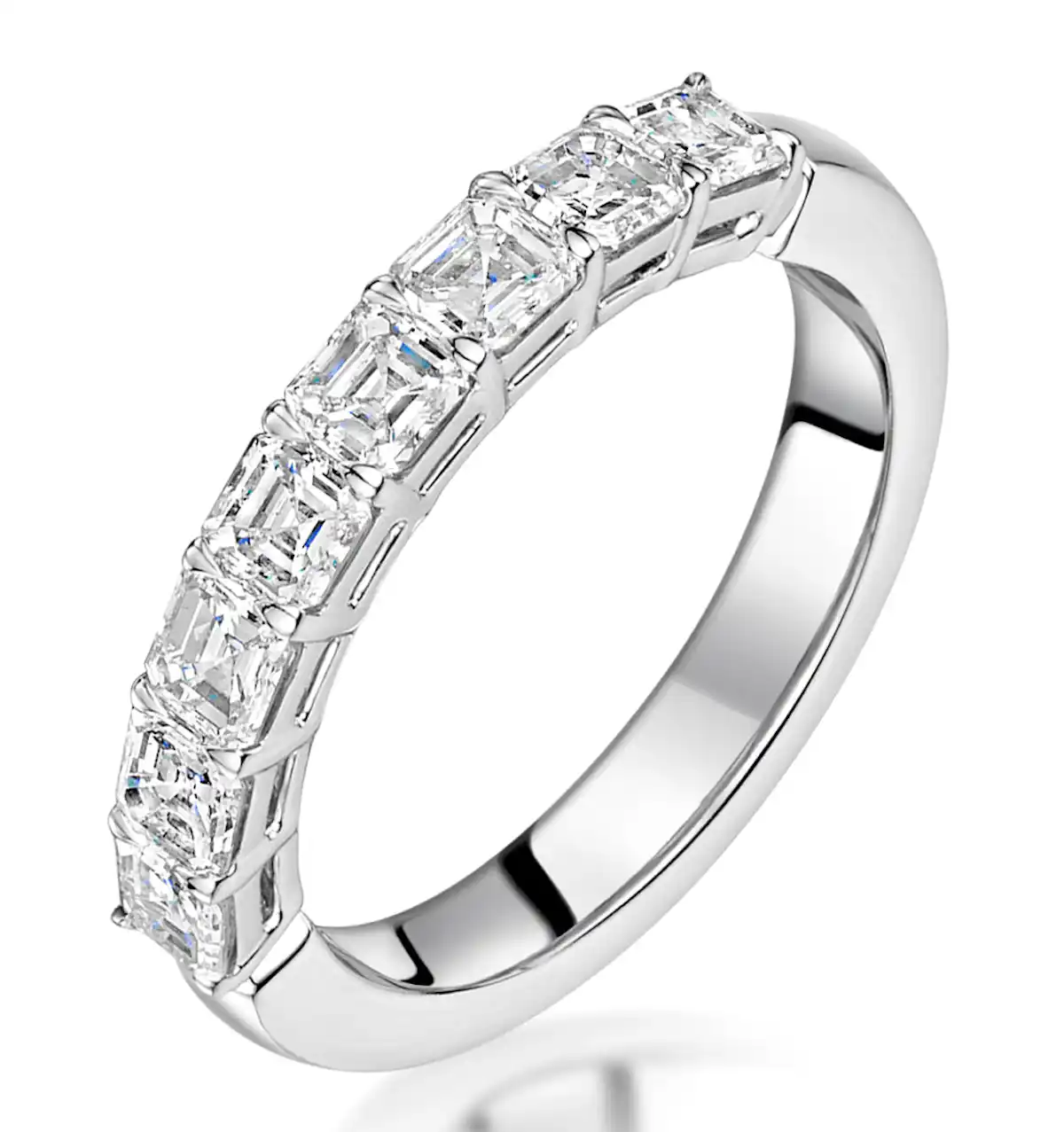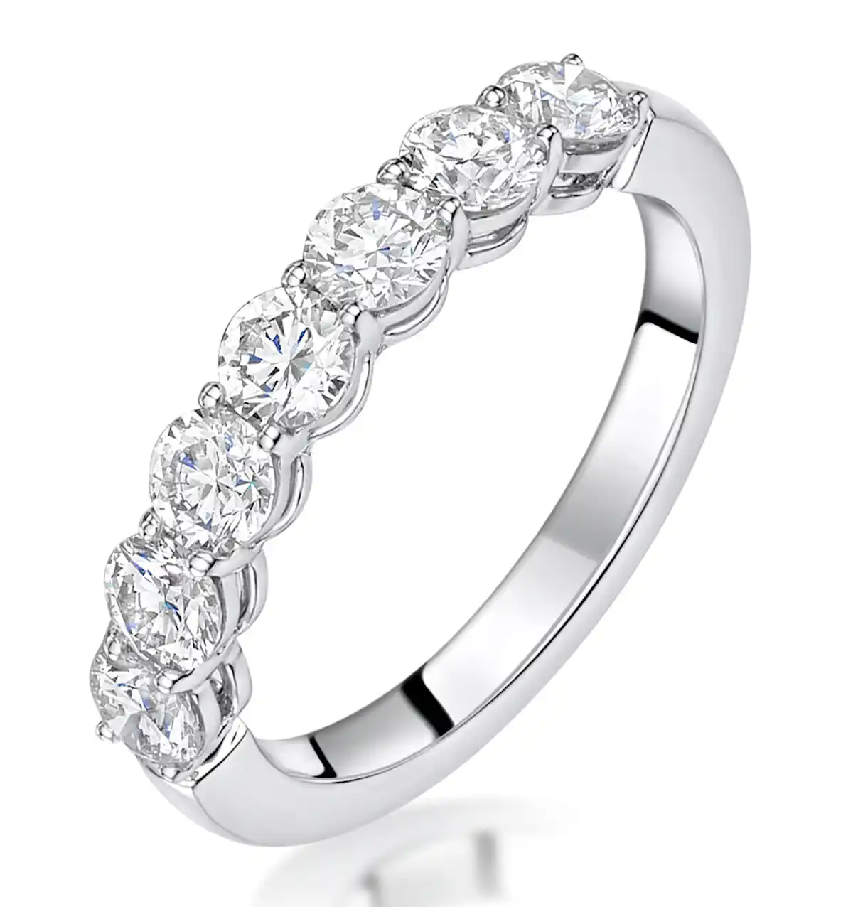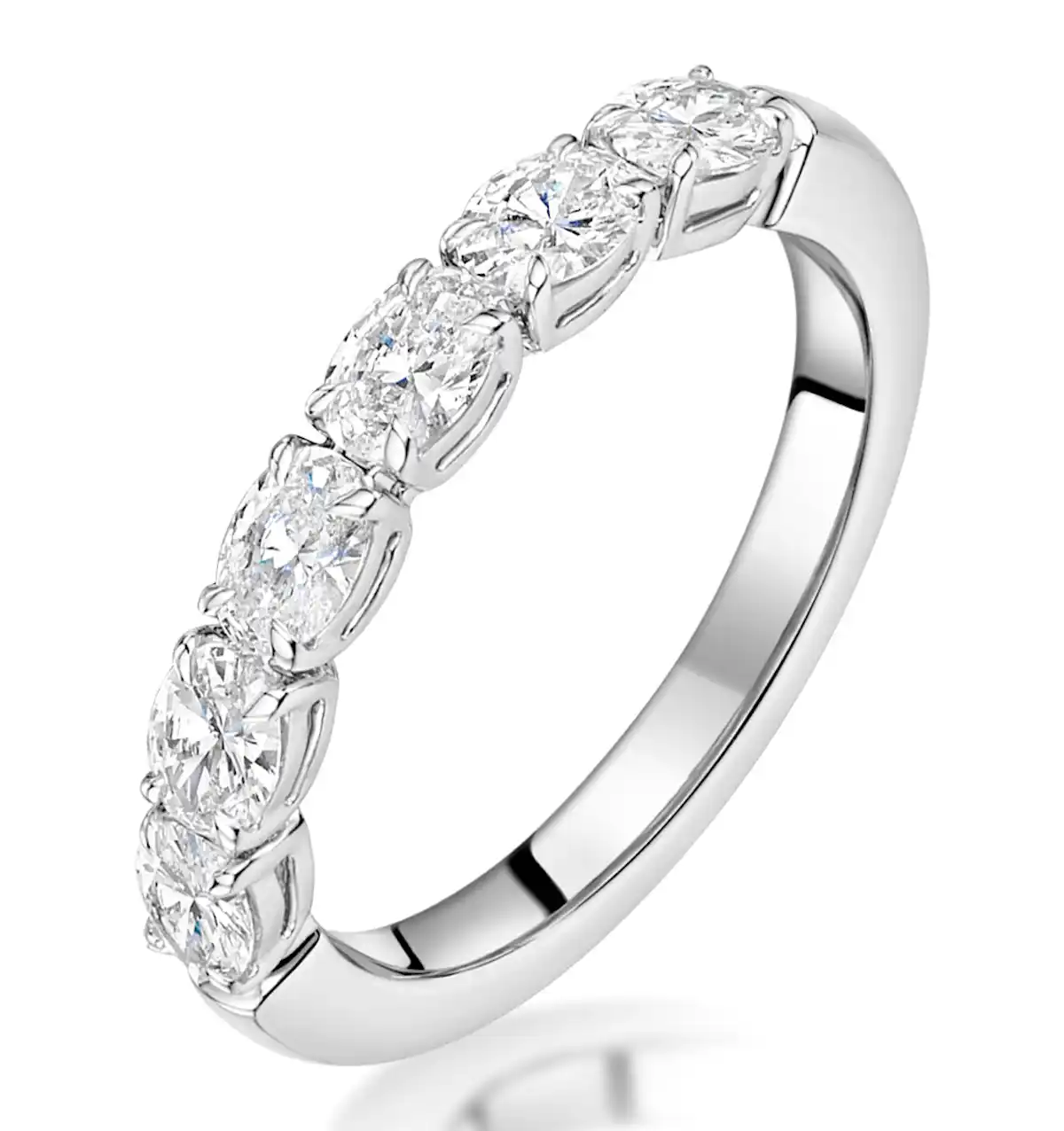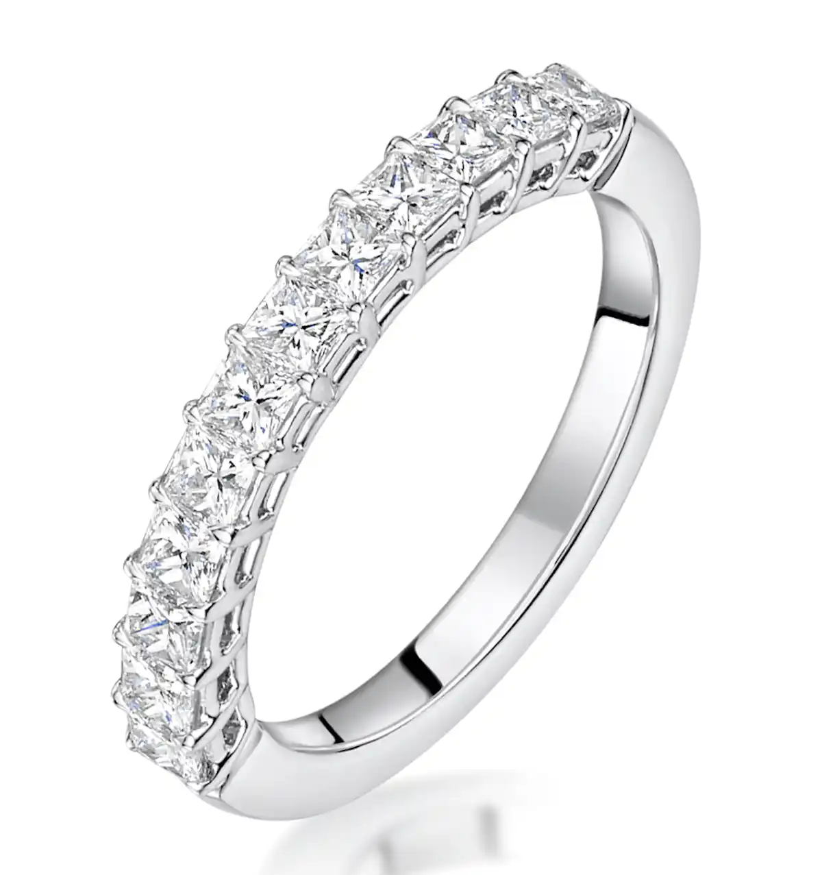 A full eternity ring features diamonds or gemstones set all the way around the band, creating continuous sparkle from every angle. A half eternity ring has stones set across the front half of the band only, leaving the back smooth for added comfort and easier resizing. Both styles symbolise everlasting love, with the choice often coming down to personal preference and lifestyle.