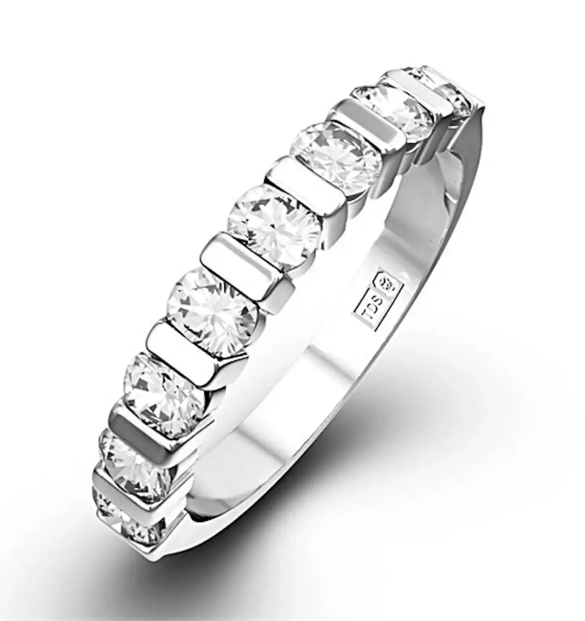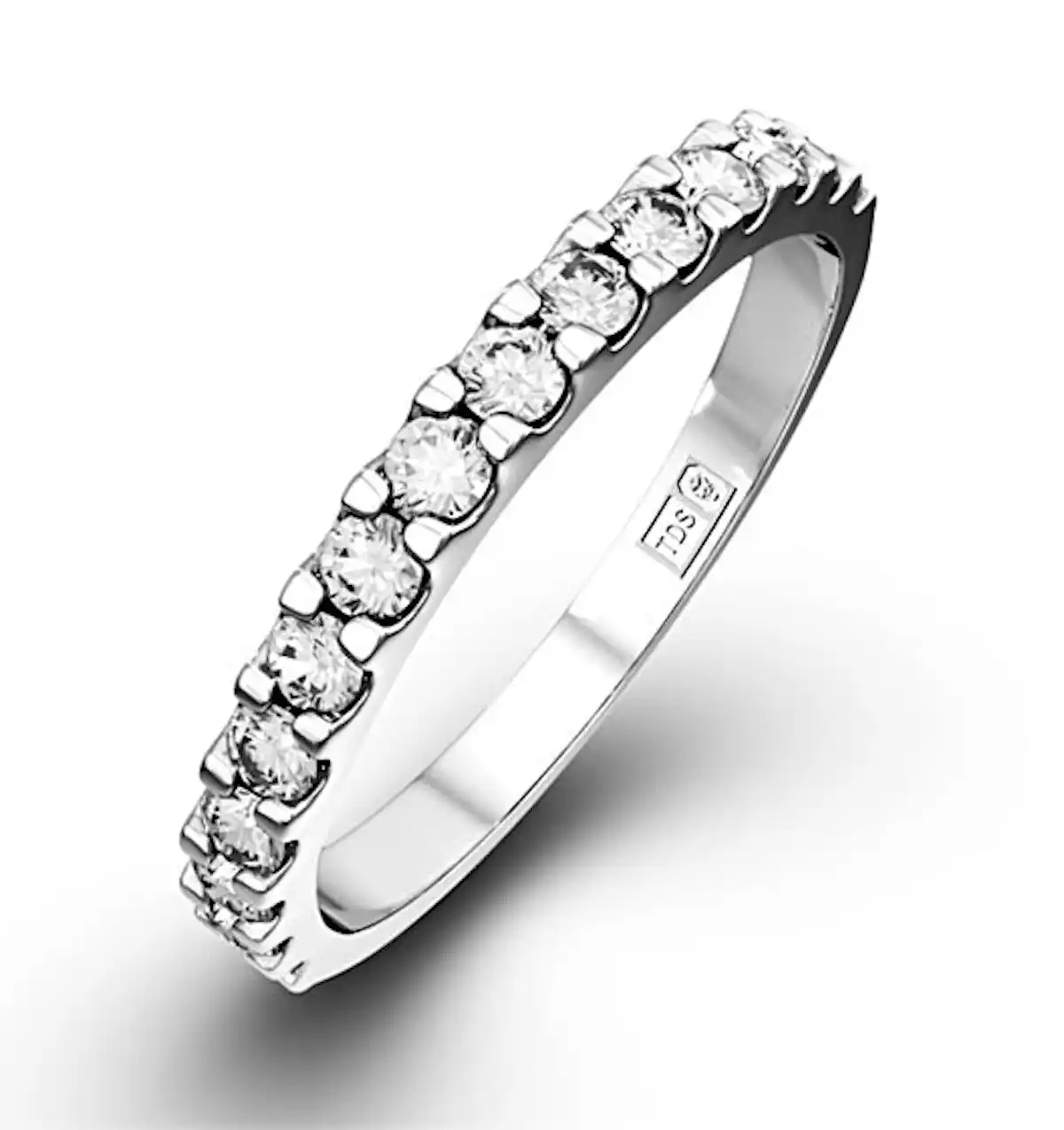 A full eternity ring features diamonds or gemstones set all the way around the band, creating continuous sparkle from every angle. A half eternity ring has stones set across the front half of the band only, leaving the back smooth for added comfort and easier resizing. Both styles symbolise everlasting love, with the choice often coming down to personal preference and lifestyle.