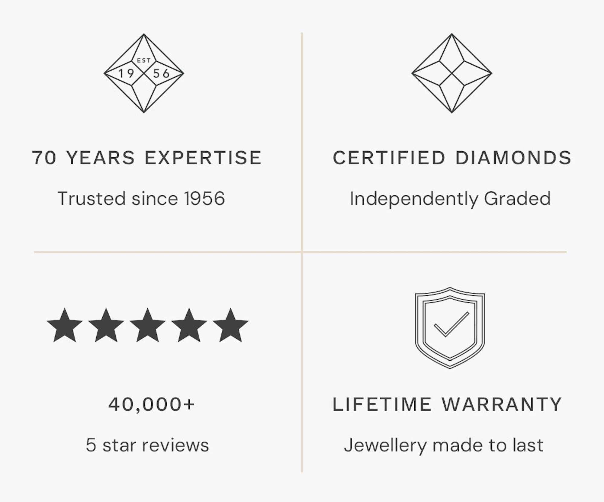 We stand by the quality of our jewellery. That’s why all our pieces come with a 5-year warranty against defects in materials or craftsmanship. Every item is also fully hallmarked according to UK legislation, confirming its authenticity and origin.