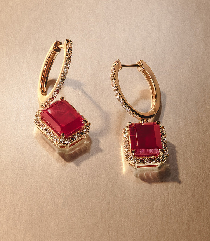 Discover more about the beauty of the Astra Lab Ruby and Diamond Drop Halo Round Cut Earrings. These sterling silver earrings - with 0.32ct of H/SI quality pavé diamonds expertly placed along the front - break the mould from a...