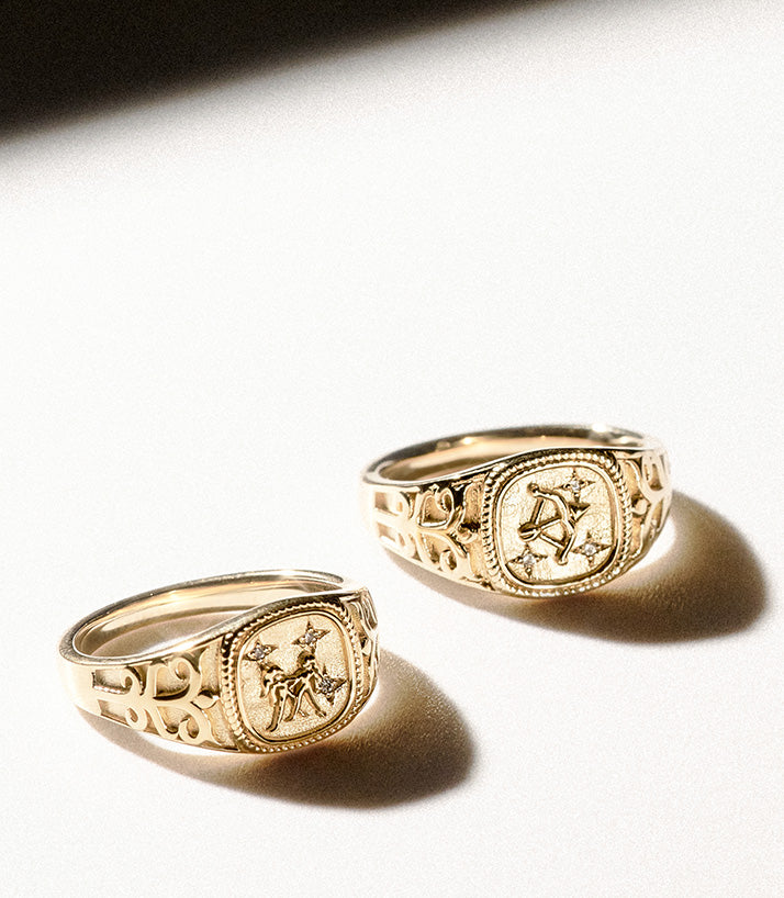 Discover our Star Signet Ring in the finest recycled18k gold vermeil, featuring a sparkling 0.03ct lab grown diamond. This ring reimagines the traditional signet with a fresh, modern twist. Featuring a 0.03ct round lab diamond at its centre, the star-inspired...