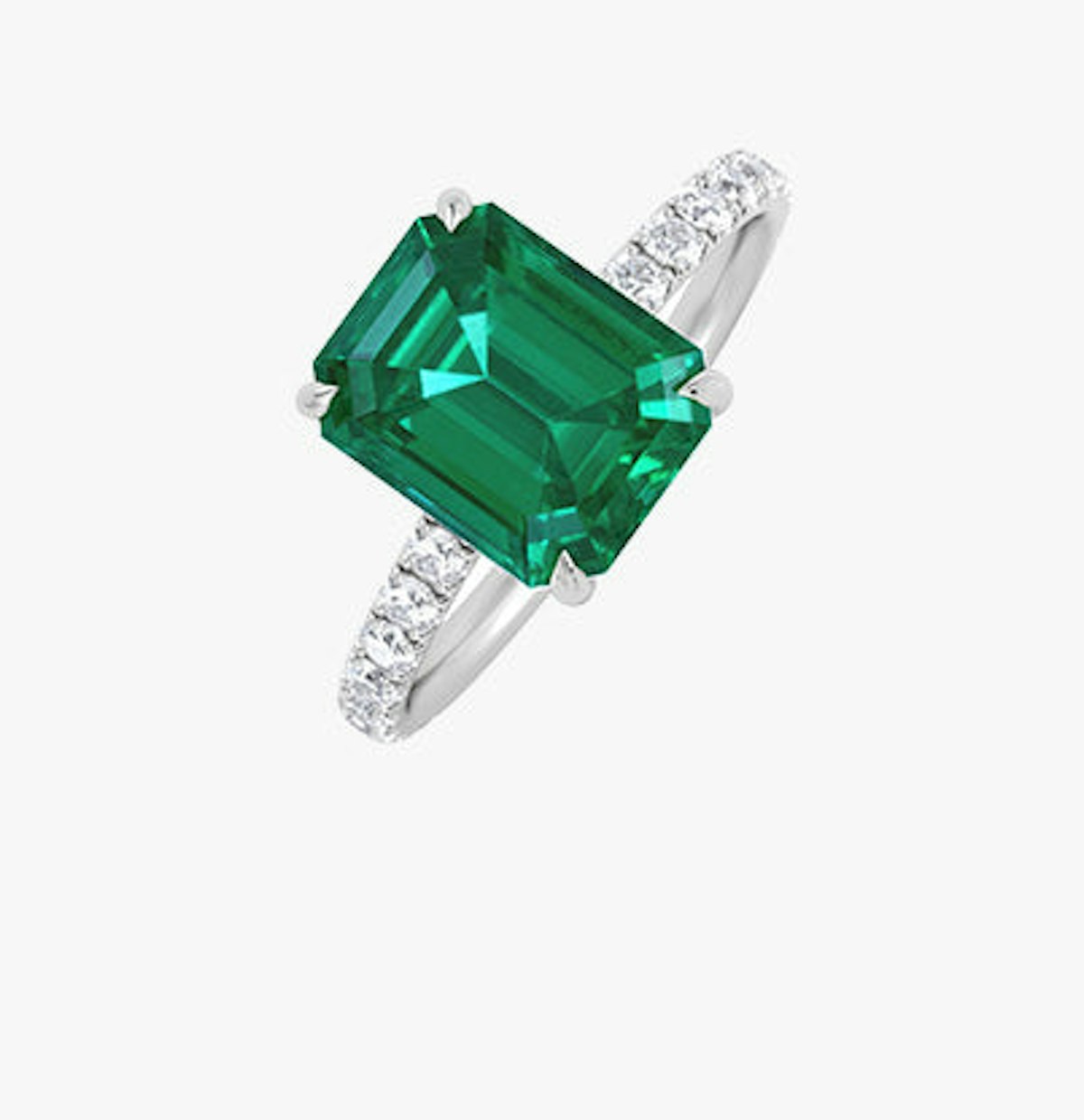 Discover our Amora Gem hidden halo emerald engagement ring with a diamond shank, featuring a 2.50ct emerald cut emerald as its main stone and 0.55ct of lab-grown diamonds, set in the finest 18k yellow gold. From above, this classic design...