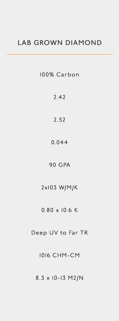 Exactly the same as mined diamonds, lab grown diamonds consist of carbon atoms in a lattice crystal structure.