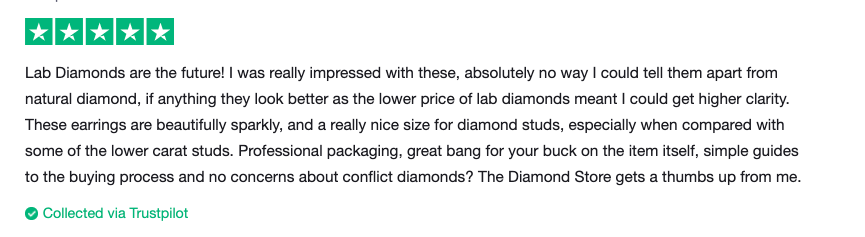 We always ask our customers to review the jewellery they buy from us. Here’s what one had to say about our lab grown diamond earrings.