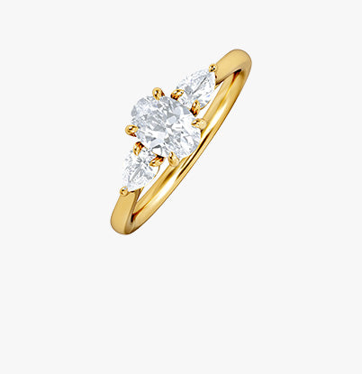Discover our Evoke Oval Cut Lab Diamond Trilogy Ring, featuring a total of 0.50ct of brilliant F/VS lab-grown diamonds and a 0.25ct centre stone, set in luxurious recycled gold vermeil. This ring brings a contemporary elegance to the classic trilogy...