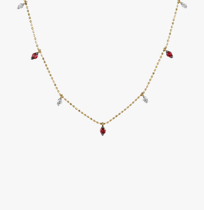 Discover our Alegria Lab Ruby Pendant 0.90ct in 18k Gold Vermeil, featuring 0.13ct of lab-grown diamonds and a vibrant 0.90ct of lab-grown rubies in an 18k gold vermeil setting. This necklace showcases a beautifully crafted single clover-shaped centerpiece, symbolising both...