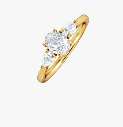Discover our Evoke Oval Cut Lab Diamond Trilogy Ring, featuring a total of 0.50ct of brilliant F/VS lab-grown diamonds and a 0.25ct centre stone, set in luxurious recycled white gold. This ring brings a contemporary elegance to the classic trilogy...